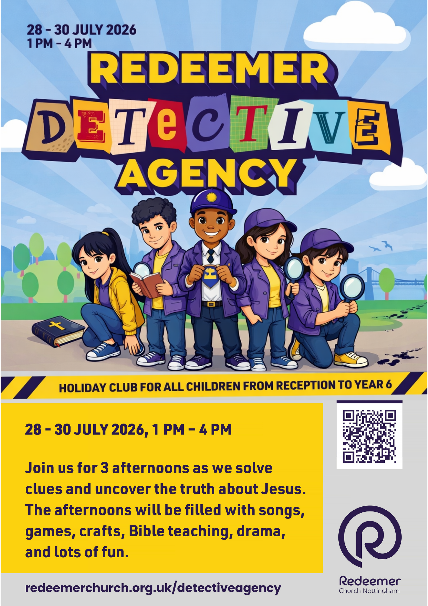 We would love for you to join us at our Holiday Club this summer as we solve clues and uncover the truth about Jesus!